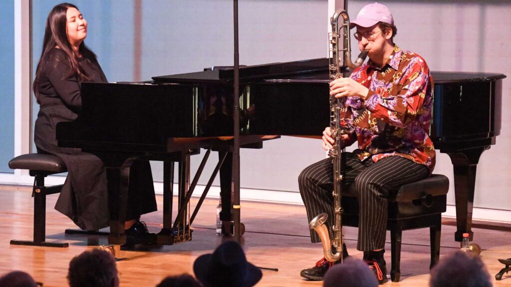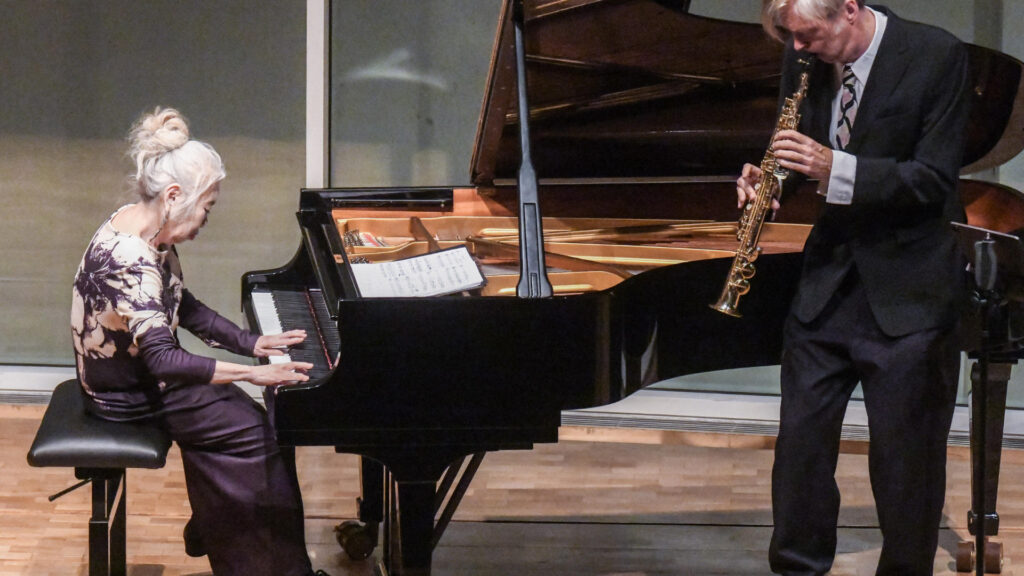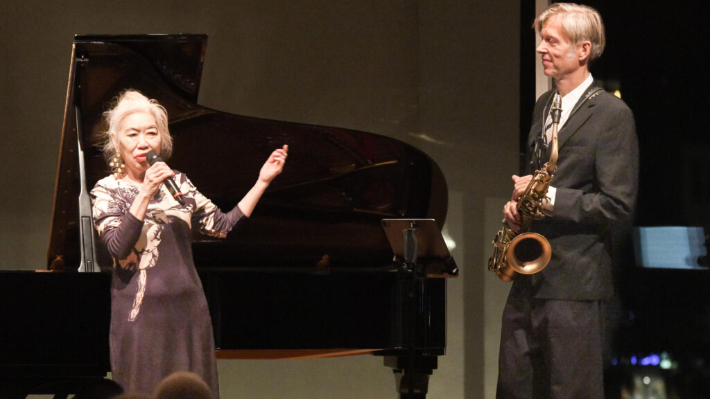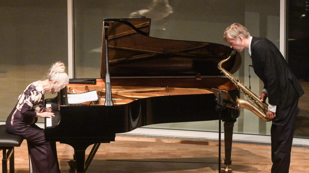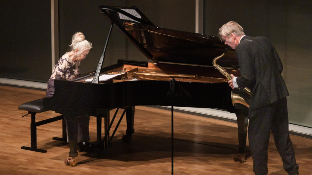 Was für ein Duo: Aki Takase, die Grand Old Dame des modernen Jazzpianos, und der Saxofonist Daniel Erdmann spielen Stücke des großen Duke Ellington!